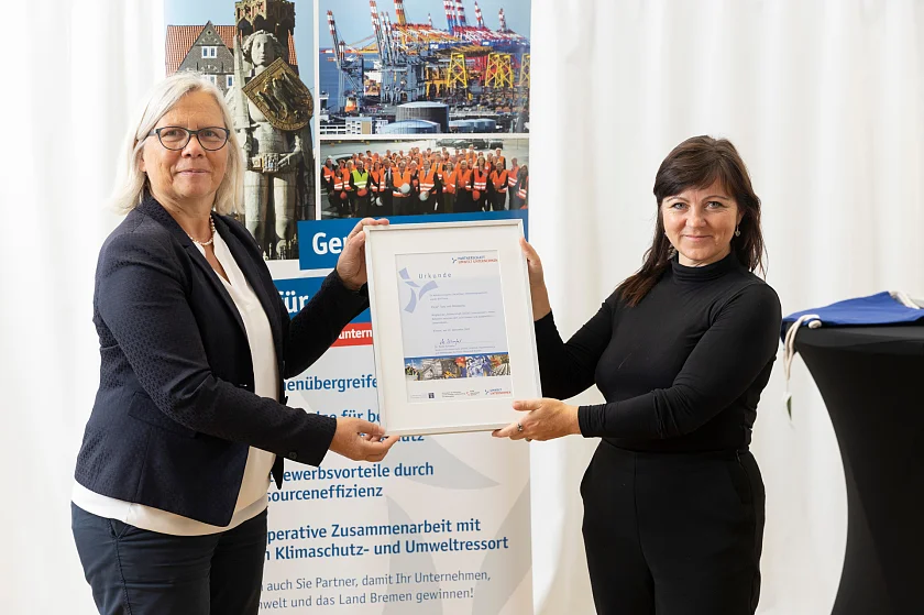 Vier Aufnahmen in die "Partnerschaft Umwelt Unternehmen", drei weitere in das "Bündnis für Mehrweg" und eine Auszeichnung zum "Klimaschutzbetrieb CO2 minus 20": So lautete die positive Bilanz des Bremer Umweltressorts bei der Vertragsunterzeichnung und Titelverleihung in der etage° – einem der neuen Mitglieder im Netzwerk. Damit ist die Bremer Umweltpartnerschaft auf 214 und das Mehrwegbündnis auf 33 Akteure angewachsen. Als Klimaschutzbetrieb wurden in den vergangenen 13 Jahren nunmehr 72 Mal Firmen ausgezeichnet, manche bereits mehrfach. "Diese Zahlen zeigen: In unserem Bundesland setzen immer mehr Betriebe auf nachhaltiges Wirtschaften. Die acht Neuen tragen mit unterschiedlichen Maßnahmen dazu bei, den Umweltschutz bei uns vor Ort zu verbessern. Das kommt allen Bürgerinnen und Bürgern in Bremen und Bremerhaven zugute", erklärte Hildegard Kamp, Abteilungsleiterin Umweltwirtschaft, Klima- und Ressourcenschutz, die die Initiativen begleitet. Martin Schulze von der Geschäftsstelle Umwelt Unternehmen ergänzt: "Es freut uns sehr, weitere Firmen in unseren Reihen zu wissen die Ideen haben, diese umsetzen und mit anderen kooperieren wollen, um die eigene Öko-Bilanz weiter zu verbessern."