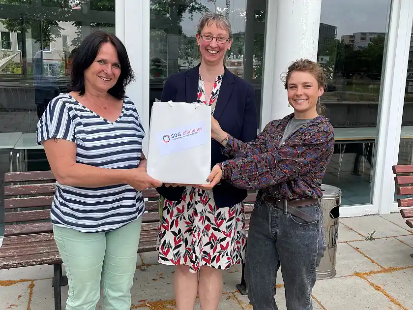 Mit der Bionatic GmbH & Co. KG, der Bremer Dienstleistungs-Service GmbH und der Werbeagentur Brandfisher stehen die Gewinner:innen der diesjährigen SDG-Challenge in Bremen fest. Als Belohnung gab es Geschenktüten mit nachhaltigen Snacks und Getränken. Die drei Unternehmen haben sich in unterschiedlichen Aktionen mit dem Thema Nachhaltigkeit auseinandergesetzt.