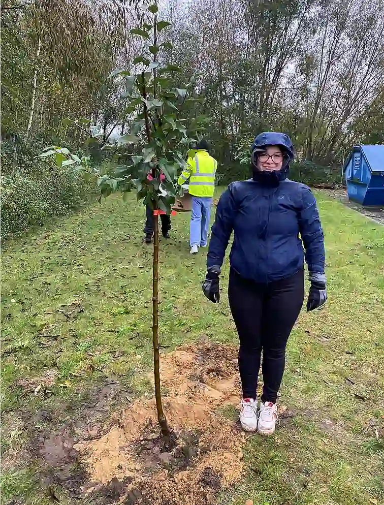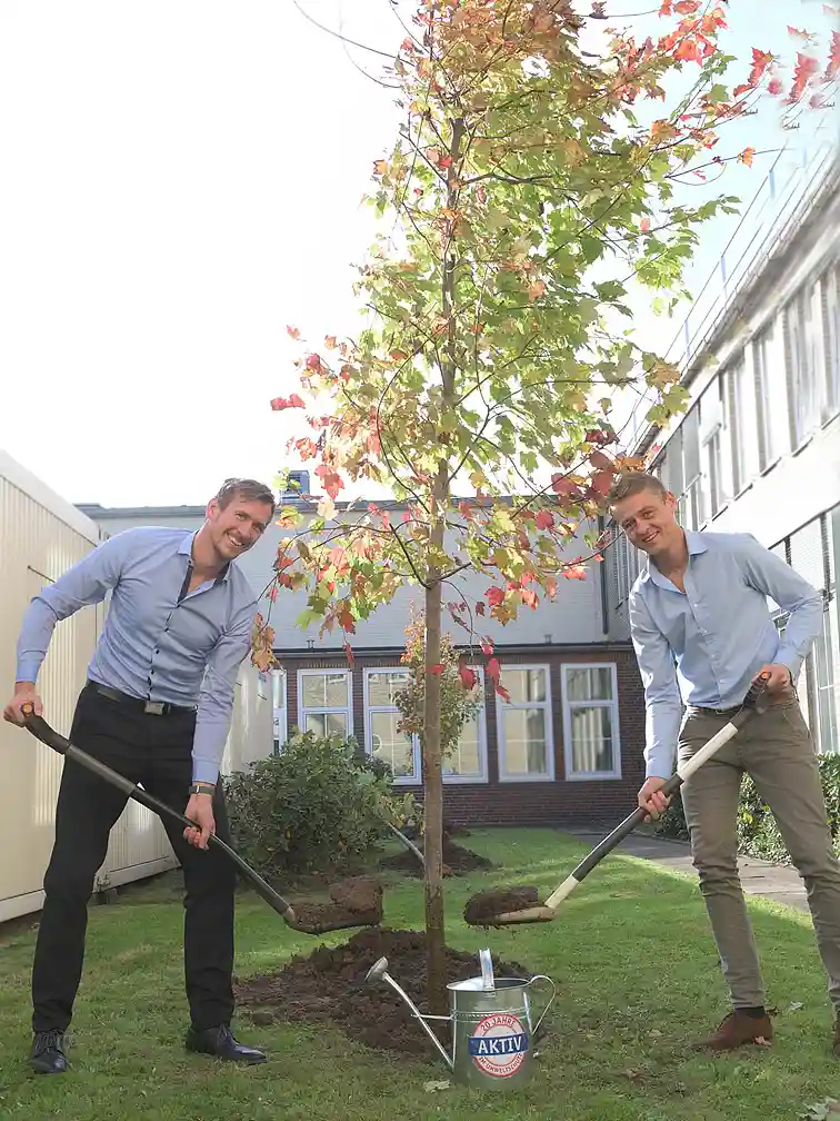 Sie war Höhepunkt und Finale der Aktionswochen anlässlich des Jubiläums 20 Jahre "Partnerschaft Umwelt Unternehmen": eine groß angelegte Baumpflanzaktion. Über 20 Partnerunternehmen haben sich daran beteiligt und in den vergangenen Wochen mehr als 100 Bäume auf ihrem Firmengelände oder auf Privatgrundstücken von Beschäftigten in Bremen und Bremerhaven gepflanzt. "Ein beeindruckendes Zeichen für den Klimaschutz und kein selbstverständliches unternehmerisches Engagement", wie Staatsrat Jan Fries von der Senatorin für Umwelt, Klima und Wissenschaft erklärt. Nach einer aktuellen Evaluation kostet Bremen die Pflanzung eines Baums im Straßenraum 5.700 Euro; in Freianlagen liegt der Preis bei 2.860 Euro. "Da lässt sich schnell überschlagen, welches Volumen hinter der Aktion der ‚Partnerschaft Umwelt Unternehmen‘ steckt und welche Bedeutung sie für das Land hat", betont er weiter.