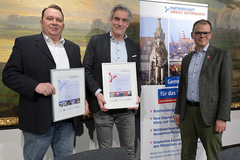 "Alle zehn Unternehmen, die heute verdient im Mittelpunkt stehen, leisten Vorbildliches und zeigen: Nachhaltiges Wirtschaften ist in unterschiedlichen Branchen möglich und führt zum Erfolg. Die von den Akteuren eingeschlagenen Wege sind individuell, zukunftsweisend und nachahmenswert – wir dürfen uns auf den Austausch mit ihnen freuen", betonte Jan Fries. Für Martin Schulze von der Geschäftsstelle Umwelt Unternehmen stellen die neuen Mitglieder eine Bereicherung für die Partnerschaft dar. "Sie bringen viel Wissen rund um den betrieblichen Umwelt- und Klimaschutz mit, aber auch einen beispielhaften Innovationsgeist. Indem wir solche Betriebe zusammenbringen, lassen sich die gesteckten Klimaschutzziele im Land Bremen leichter erreichen", erklärte er.