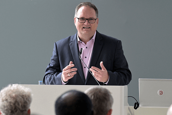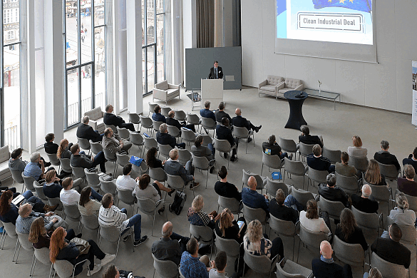 In seinem Vortrag "Überrollt der Omnibus die Nachhaltigkeit? Der Green Deal der EU und Deutschlands Schlingerkurs" legte Prof. Dr. Bernd Siebenhüner von der Universität Oldenburg den Fokus auf die Herausforderungen für kleine und mittelständische Unternehmen im Umgang mit sich schnell ändernden Gesetzeslagen und Vorgaben zur Nachhaltigkeitsberichtspflicht. Anschließend stellte Katja Stolz aus dem Umweltressort das Förderprogramm "Schwammstadt" vor, über das Unternehmen wie auch Privatpersonen finanzielle Unterstützung bei der Begrünung von Dächern und Fassaden, der Speicherung und Nutzung von Regenwasser sowie der Entsiegelung von Flächen erhalten können.