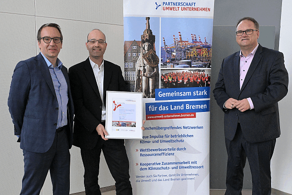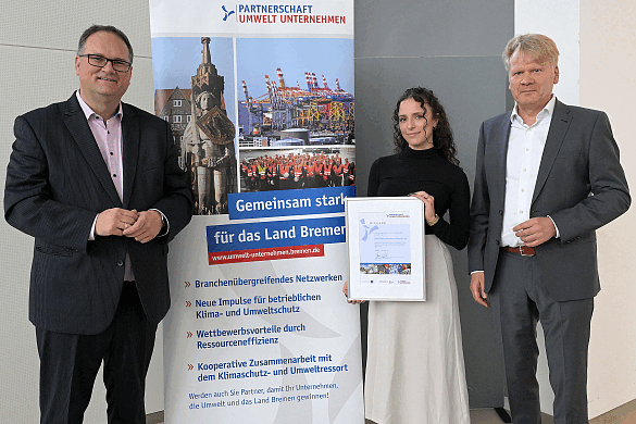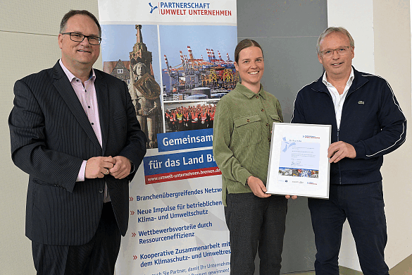 In seinem Grußwort hob er die Vielseitigkeit und Stärke des Netzwerks hervor: "Die Partnerschaft Umwelt Unternehmen zeigt, dass engagierte Betriebe den Weg in eine klima- und umweltfreundliche Zukunft gehen wollen. Diese Unternehmen haben erkannt, dass sich Nachhaltigkeit für sie auch wirtschaftlich rechnet. Besonders freue ich mich, dass wir heute drei neue Mitglieder aufnehmen. Mit der AES Aircraft Elektro/ Elektronik System GmbH, der Stadt.Energie.Speicher GmbH und der Städtischen Wohnungsgesellschaft Bremerhaven mbH gewinnt die Umweltpartnerschaft weitere Impulsgeber aus ganz unterschiedlichen Branchen. Diese Diversität bei Partnerschaft Umwelt Unternehmen ist ein großer Vorteil, der dabei hilft, unseren Wirtschaftsstandort zukunftsfähig weiterzuentwickeln", so Fecker.